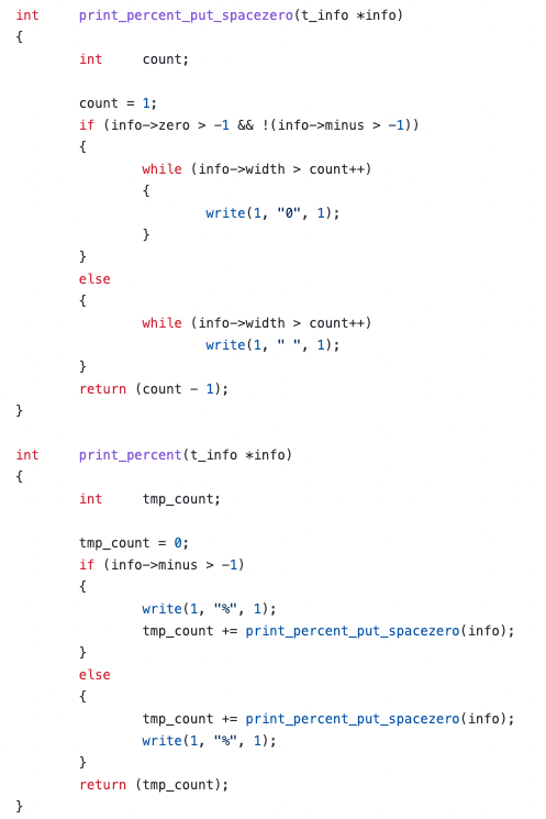 %를 가장 먼저 구현하는게 좋을 것 같다고 생각했다. % 는 printf("%%);의 형태로 쓰여서 %를 출력하는 서식지정자이다. 이걸 만들면 다른 서식지정자에 대해서도 구현에 대한 방향을 잡을 수가 있다.