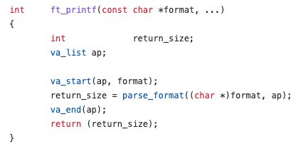 ft_printf 함수 자체에는 가변 인자를 가져와서 다른 함수에 넘겨주는 동작만을 수행했다.