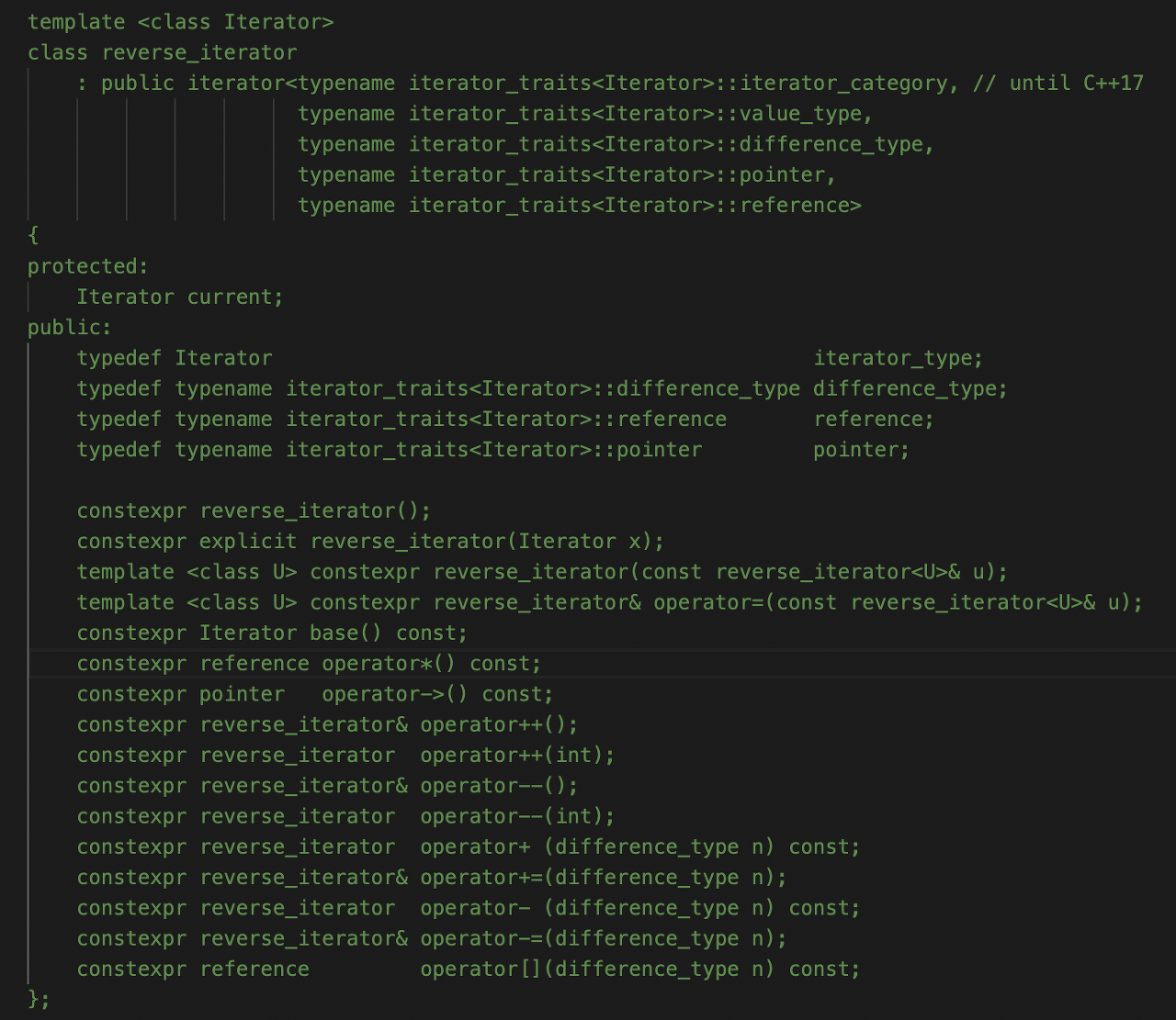 stack은 Adaptor Container 이므로 컨테이너 클래스가 지정되지 않은 채 인스턴스화 되면 deque를 가져와서 만든다. 따라서 deque의 iterator을 종류별로 구현하고, 각 iterator의 기능들을 구현하면 된다.