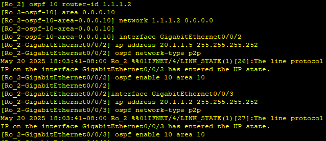 그다음으로 area를 지정하게 되는데, area id는 정수(예: `area 10`)로 입력해도 되고 ip 주소 형식(예: `area 0.0.0.10`)으로 입력해도 된다. 내부적으로는 ip 형식(dotted-decimal)으로 저장된다.
